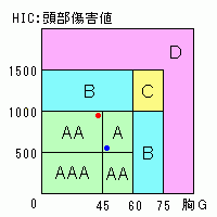 米国NHTSAの方では、HICと胸Gとの2つの値を関連付けて評価している。