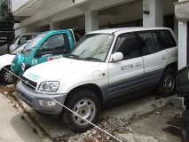 建物の前には軽1BOXのEVや、トヨタ RAV4 EVなどが並べられている。 端から端までロープが張ってあって、無人だった。