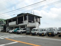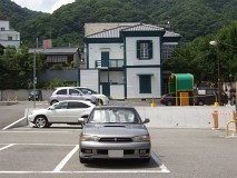 何度か前を通った事はあるけど以前は何に使われていたか憶えていないその建物は、今は左端の階段に「でんき自動車博物館」の小さな看板がある。